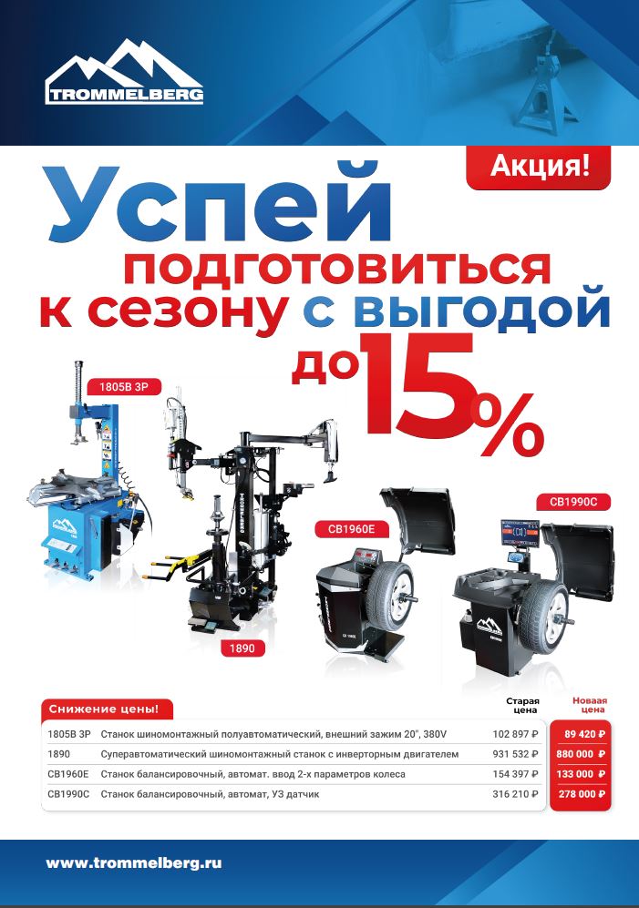 Акция! Скидки до 15% на шиномонтажное оборудование TROMMELBERG!