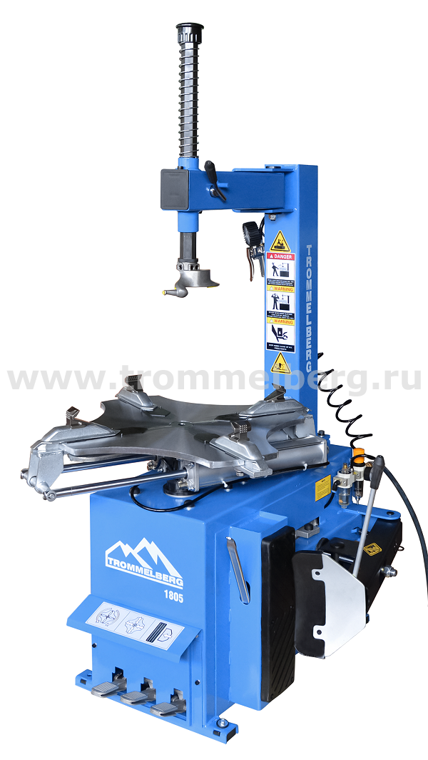 Полуавтоматический шиномонтажный станок Trommelberg 1805B для обслуживания колес со стальными / алюминиевыми дисками наиболее распространённых диаметров.